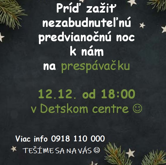 Príď zažiť nezabudnuteľnú predvianočnú 🌲❄️🎁noc 🌌 k nám do Detského centra.